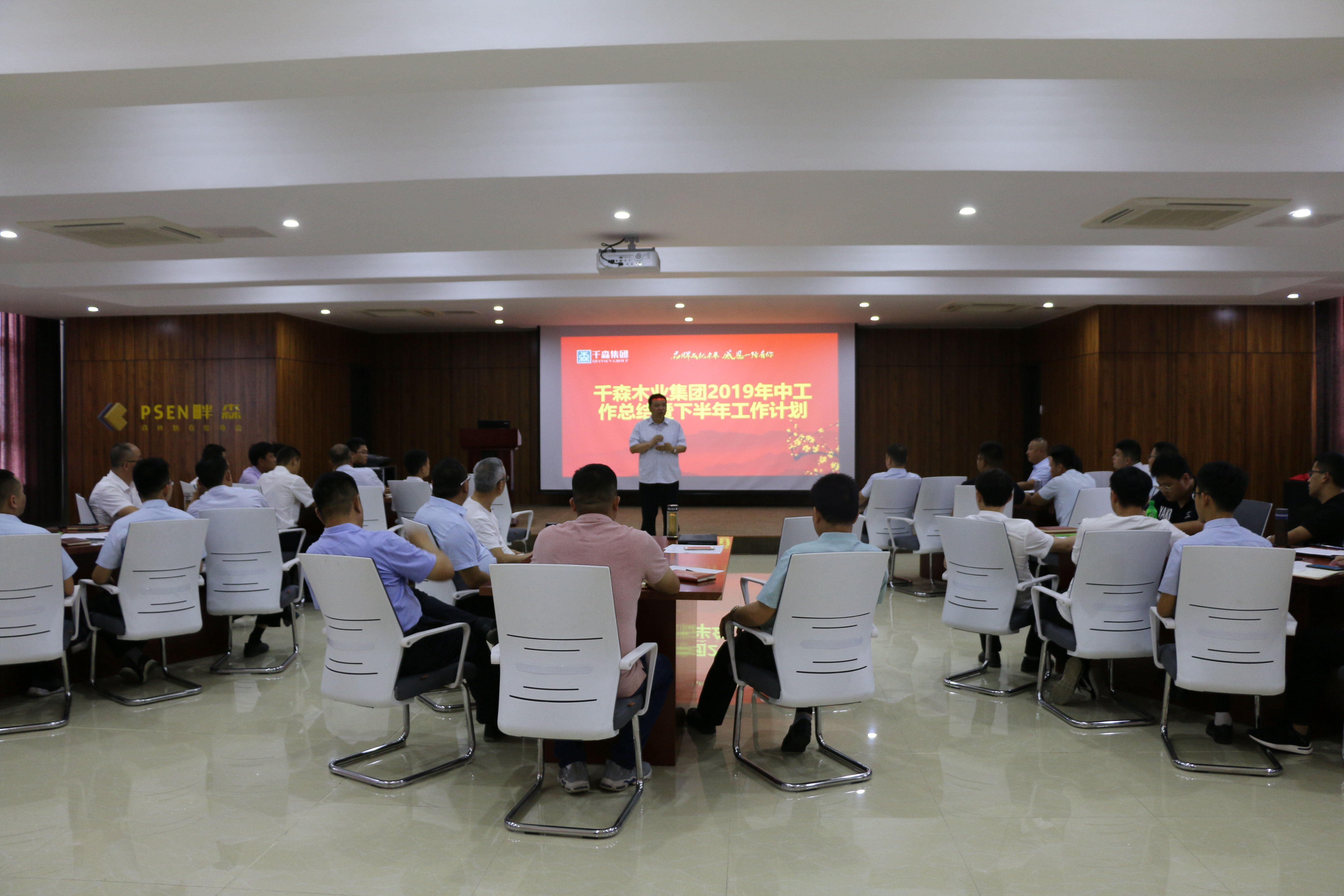 2019年7月4日,千森木业集团2019年中工作总结暨下半年工作计划大会在畔森研发中心隆重召开,会议回顾总结了集团2019上半年各项工作和取得的成绩,分析当前公司面临的形式,认真反思查找工作中存在的问题与不足,进一步明确下半年的工作任务和发展目标,确保全年目标任务顺利完成。