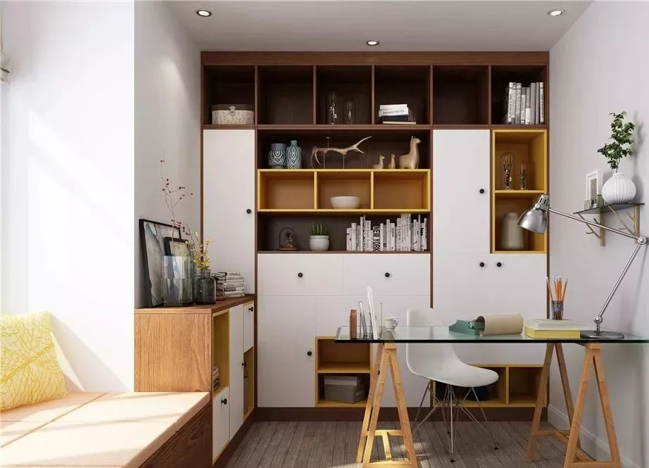 在当下的刚需户型中,几乎所有人家的房子里,都会有一个不大不小的“房间”,完全用来做书房的话,偶尔来了客人住家里又没个床,而完全用来做客房的话,使用率不高又觉得浪费了,利用起来非常的尴尬!这个时候就可以通过定制家具的设计,把书桌与床或收纳柜组合的设计,让小空间实现大利用的可能。